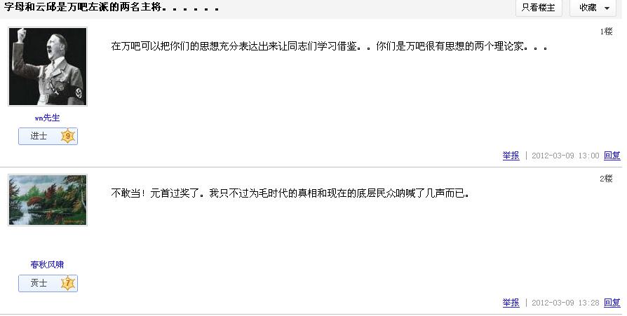 楼上来了万山戴雪吧的自称"左派"的会员,