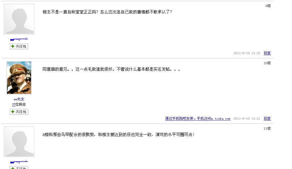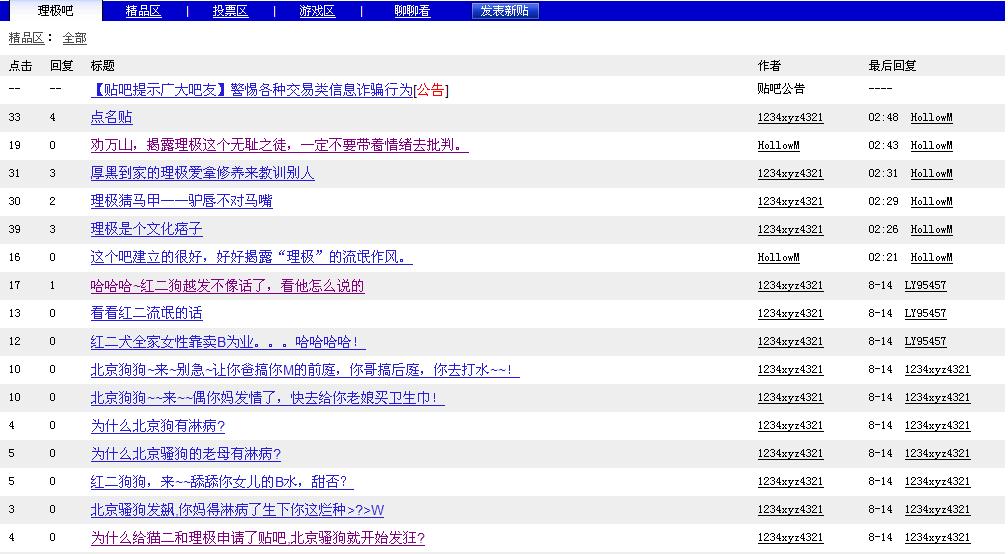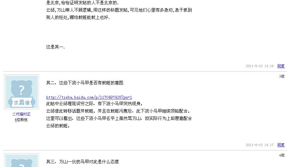 之后在该贴吧发生的事情,其下流无耻程度似乎已达到人类的极限,让人叹为观止,为不影响论坛的严肃性,本人未在主贴后继续跟贴补充.