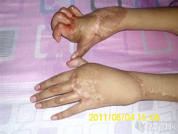 当送到医院后,医生建议截肢,邢翠翠死活不愿意。经过会诊,医院决定给邢翠翠做植皮手术。经过8个小时的手术后,邢翠翠的双手虽然保了下来,但是却落下了残疾。