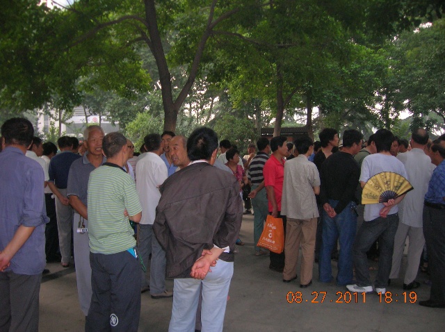 针对右派对毛主席的污蔑攻击,老人感到心疼如刀绞,大约6点20分左右,老人说着说着就泪水如雨,失声痛哭,周围一圈人心情也十分悲愤,纷纷给老人递纸巾擦眼泪,奉劝老人放宽心,老人和周围的群众表示:谁反对毛主席,他就是我们的敌人,我们坚决和这些敌人决战到底。