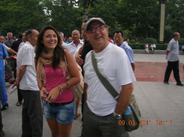一对老外到广场,满脸喜气笑洋洋,对着广场主席像,全神贯注拍照忙。我将老外来拍照,此处留存照一张。