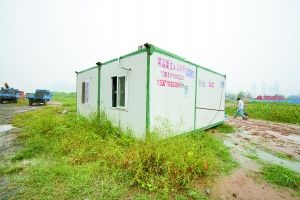 记者很快来到中州大道与晨旭路交叉口东侧,看到两个白色的大集装箱紧贴在一起。由于积水,集装箱周围的通道变成了泥地。集装箱向西的一面,分别设置了一个门和窗。