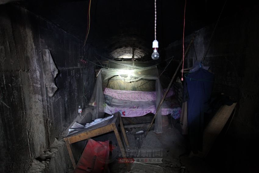 没有门,一张烂桌子和一个床,还有一副破烂的蚊帐。东西太乱,可这些都是他们的宝贝。 潇湘晨报 唐杰/摄