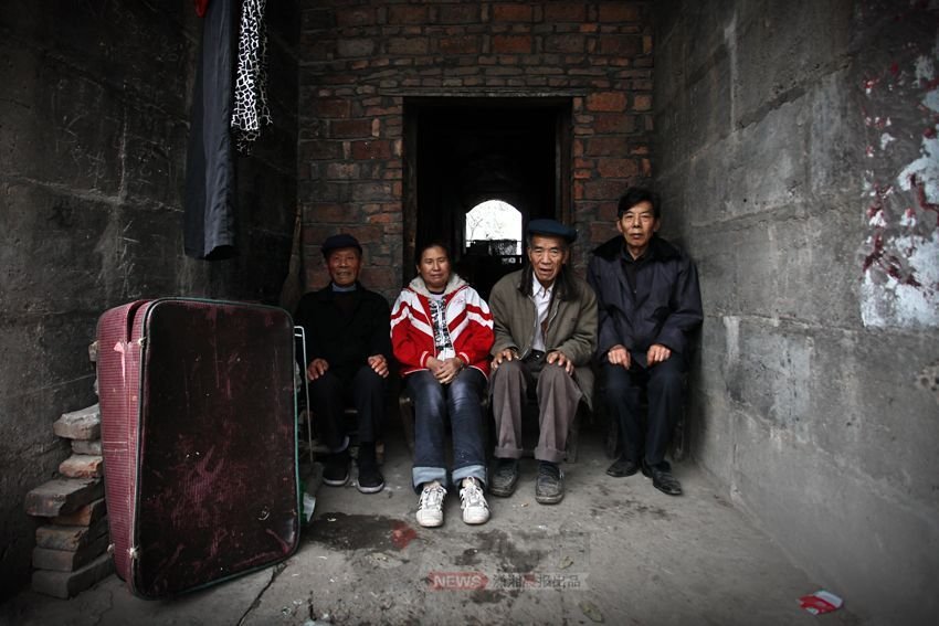 堵德成、雷桂香、龚太鑫、胡金山(从左至右),最大的78岁,最小的68岁,在家门前拍了一张“全家福”,这是他们第一次拍合影,也可能是最后一次。或许,没有儿女的照顾,不能安享晚年,是他们的不幸。但,此时,在这个破烂的“家”中,他们能够彼此温暖,彼此照顾也算一种幸运。潇湘晨报 唐杰/摄