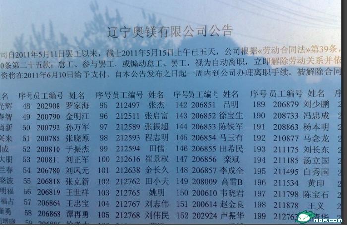 辽宁奥镁(RHI)公然一日开除所有参与维权工人将近400余人