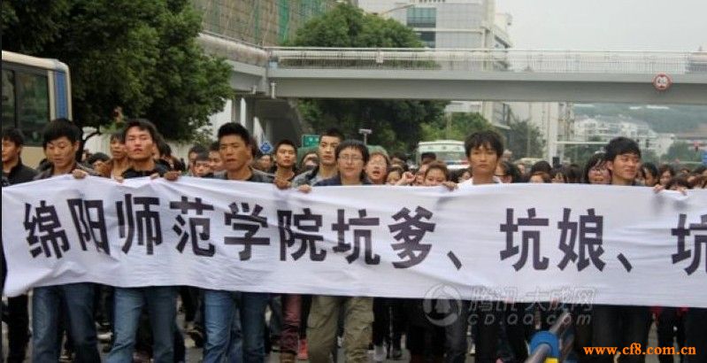 今天(11月5日)绵阳师范学院游仙校区被封校,这是3日近百名该学院物电学院成人教育学生游行到绵阳市政府抗议“绵阳师范学院坑爹、坑娘、坑学生”后,当局采取防范措施。