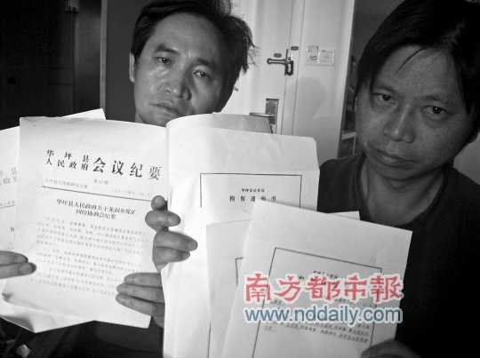 龙洞煤矿法人李世发(左)和工会主席袁应友说,官方多次责令陈祖林停止生产均遭拒绝。南都记者纪许光摄