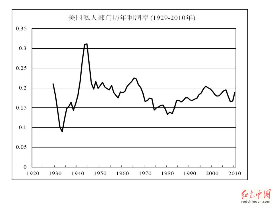 1945年至2008年,总的来说,属于美帝国主义在世界上居于统治地位和世界资本主义体系相对稳定的时期。其中第一阶段,1945年至1966年,在美帝国主义领导下,世界资本主义体系进行了一些自我改良,对无产阶级和殖民地被压迫人民做了有限的让步;这些让步在当时的历史条件下有利于世界资本积累快速、平稳发展,世界资本主义一度出现了空前快速增长的局面。如附图“美国私人部门历年利润率”所示,在经历了大萧条的沉重打击以后,美国资本家的利润率在第二次世界大战期间一度暴涨,在五十年代和六十年代始终保持在比较高的水平。这是美国和世界资本主义的繁荣时期。