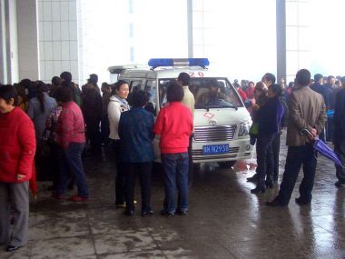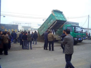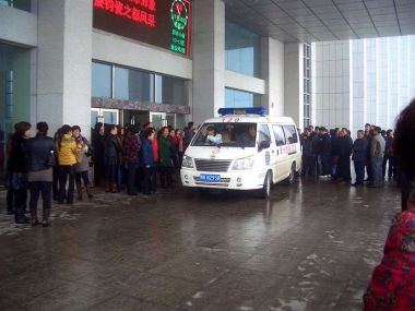 工人论坛综合网络信息报道,河南禹州市药王制药厂工人封锁工厂大门,11月16日集体聚集禹州市政府门前齐声呐喊,求生存权!还我血汗钱! 抗议现场一名孕妇因感到疲倦靠在门卫的桌子,遭到市政府门卫暴力推压,当场引发工友激愤,冲突一度激化。后120救护车到现场接走孕妇。
