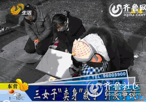 今天(24日)上午在山东省济南市泉城广场南侧,三个跪在路边的女子引起了众人的好奇。两块写着卖身救子的牌子立在她们的面前,其中一位女子的身上还披着卖身救子的白布。