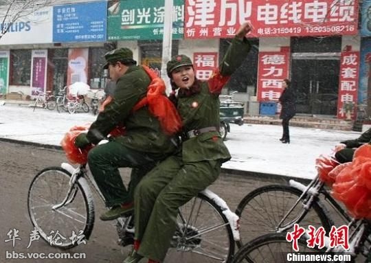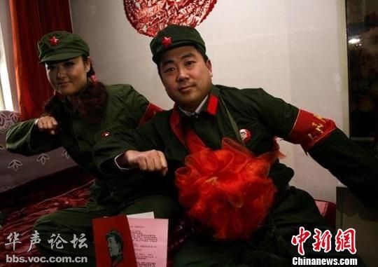 德国那只鸟鸟,我不同意你的看法哦。俺老百姓结婚爱喊啥喊啥,人家咋不喊中山万岁、蒋该死万岁呢?而是自然而然的想到了毛主席,说明他老人家从没离开过我们。不管他们是作秀也好,真心也罢,起码路上看到的人看到也高兴啊。还有,这样的婚礼形式不也很好嘛,总比几十辆豪车,招摇过市污染社会风气好吧