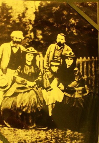 而国内包括很多英文资料里对这张照片的介绍是说,这张照片是1864年恩格斯和马克思以及他的妻子燕妮,女儿劳拉和艾琳娜的照片。现在的问题出在,马克思前面的那个女人燕妮,究竟是他的妻子还是他的女儿呢?