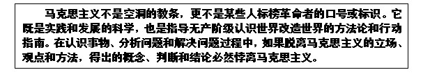 2、马克思主义不是空洞的教条,更不是某些人标榜革命者的口号或标识。它既是实践和发展的科学,也是指导无产阶级认识世界改造世界的方法论和行动指南。在认识事物、分析问题和解决问题过程中,如果脱离马克思主义的(, 下载次数:0)