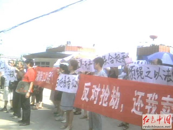 我们的工厂被非法改制以后,我们的工人兄弟姐妹有300多人,被资本家以各种名目非法开除,受《劳动法》保护的工伤职工都不能幸免。现在资本家要建新厂,我们的基本人权——生存权面临更大的威胁!