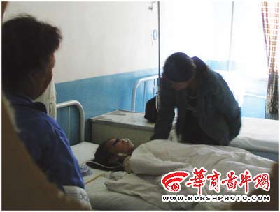 悲伤的妈妈(右一)守候在昏迷的小玉床边 ■石立飞 摄