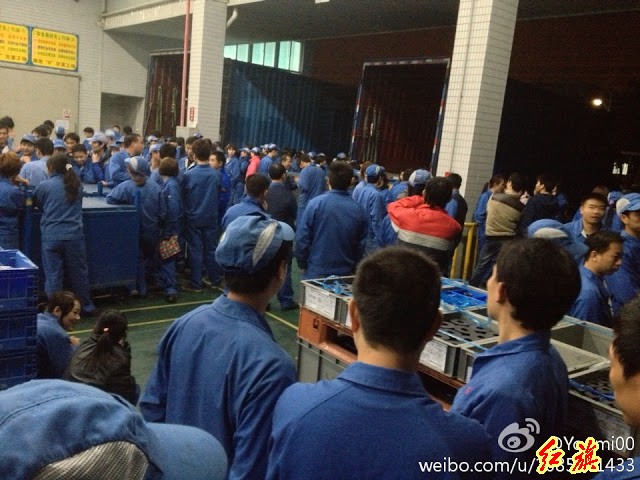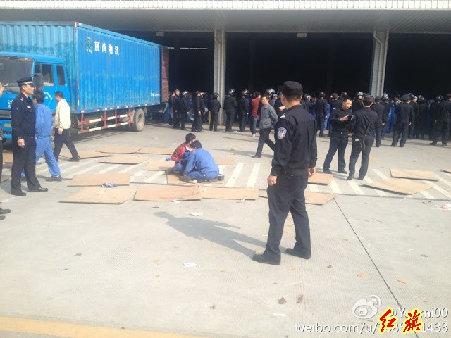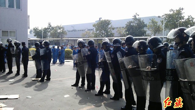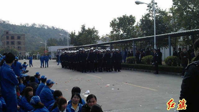 2013年1月28日下午,广州经济技术开发区,东海橡塑厂,全体员工发起罢工,抗议年终奖减少三分之一。晚上,防暴警察进入厂区戒备。