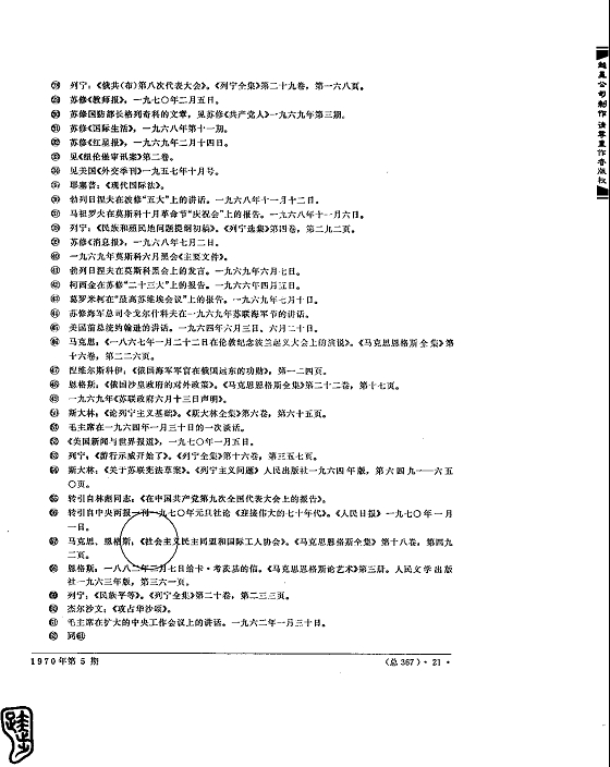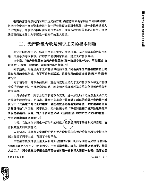 根据青苔同志的提示,我找到了毛主席关于“修正主义上台,也就是资产阶级上台”出处的原件PDF格式文件的正本,现在把〈红旗〉杂志及〈是列宁主义,还是社会帝国主义〉这篇文章一起帖在下面与各位网友共享,因为这篇在当时揭露苏修社会帝国主义的文章,现在拿来揭露中国社会的性质,再合适不过了。