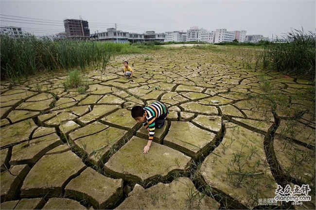 28、孩子们在谷饶镇周围因污染而废弃的农田里玩耍。