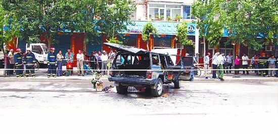 事发现场,车辆已被烧穿