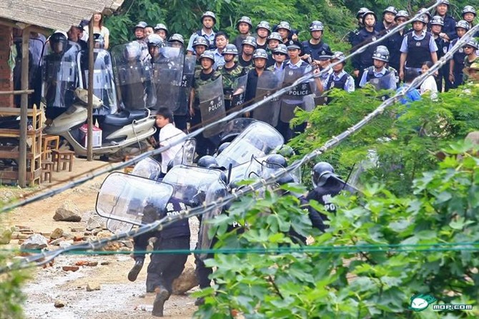 2010年8月31日又强拆民房8栋,民警打商村民2人住院,由此引起村民的极力