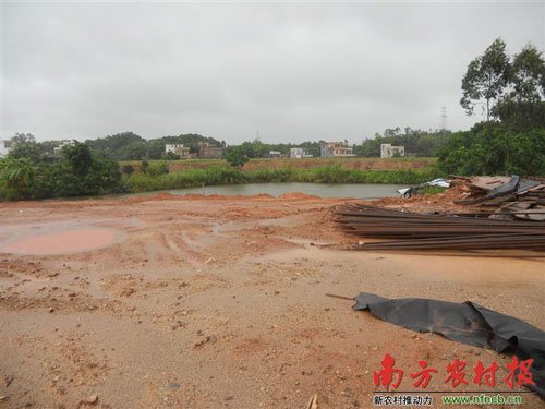 因开发商在林党的这口鱼塘强行填土而引发冲突