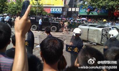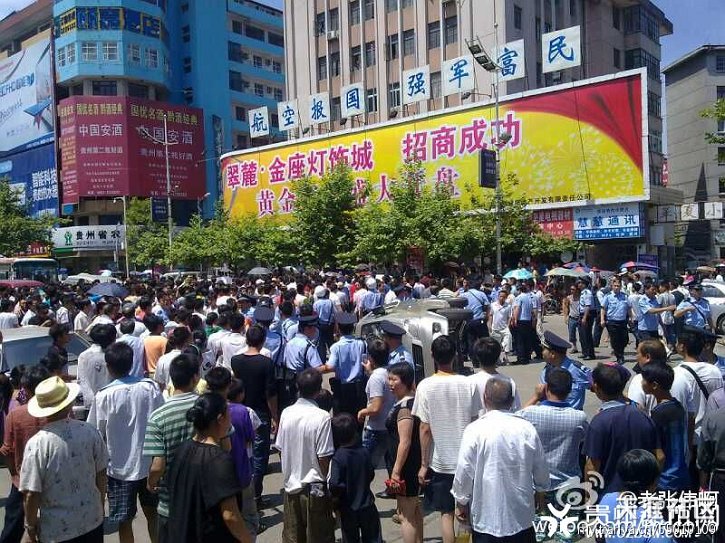 刚刚安顺主干道已经瘫痪,大批特警和武警出动,并动用了高压水枪。原因好像是城管打死了一个摆摊的残疾老人,群众把城管的车推翻了,砸了好多车.当局已派出大批武警.公安前往镇压!公安在现场收缴拍摄的群众的DV和手机.请继续关注