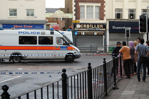 伦敦骚乱连续三晚不息,反而越演越烈。前日下午 4时,骚乱在北部哈克尼区( Hackney)率先爆发,大批戴着连衫帽的青年向警员掷杂物,又纵火烧垃圾桶和汽车。几小时后,伦敦多处都在燃烧,北部卡姆登区( Camden)、东南部伍利奇区( Woolwich)、南部克罗伊登区、佩克汉姆区( Peckham)和西部伊灵区( Ealing)等,火头数以百计,消防一度没足够消防车应付。