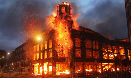 英国暴乱之火燃烧,首都伦敦前日(周一)连续第三晚爆发大规模骚乱,骚乱不止在伦敦各区蔓延,更由伦敦蔓延至第二大城市伯明翰、利物浦、布里斯托尔、诺定咸、列斯。包括 7、 8岁孩子在内的年轻暴徒,四处纵火抢掠。有建筑物烈燄烧起,一名女子被迫跳楼逃生。有男子坐在车上中枪,送院不治,成为暴乱夺去的第一条人命。英国文明之邦,此时此刻已变得无法无天。