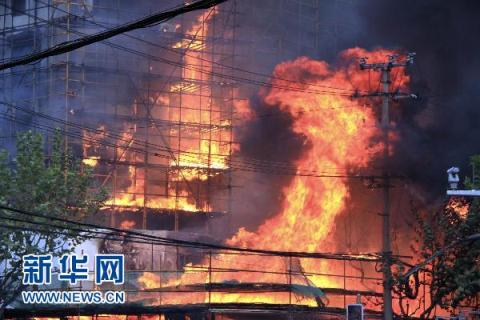 资料图片:2010年11月15日,上海余姚路胶州路高层住宅脚手架起火。新华社