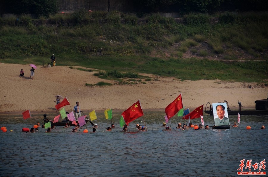 湖南湘潭冬泳队抬毛主席画像游泳 全程3000米