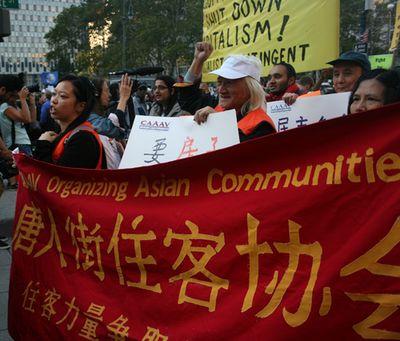 纽约众多工会成员加入“占领华尔街”游行队伍