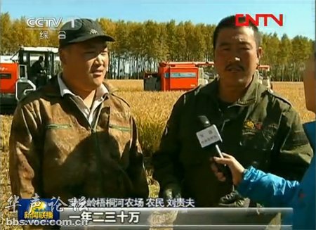 据新华网10月9日报道,黑龙江省一农场职工7日在接受媒体“一年下来挣多少钱”的采访时说,“一年二三十万”,很轻松挣到,而且政府“白给我们的钱都造好几万”。消息经央视新闻联播报导后迅速在社会上引起反响,不少声音质疑此老农是否在“吹牛”:“天啊,(种地)三个月二三十万!”“这老农,牛皮吹得杠杠的”。带着这些质疑,新华社记者赶赴该农场调查发现,由于黑龙江垦区职工承包土地相对较多,承包职工一年赚二三十万元确实比较正常,同时随着国家对种地农民补贴力度的加大,每年拿几万元农业补贴的农户也确实存在。