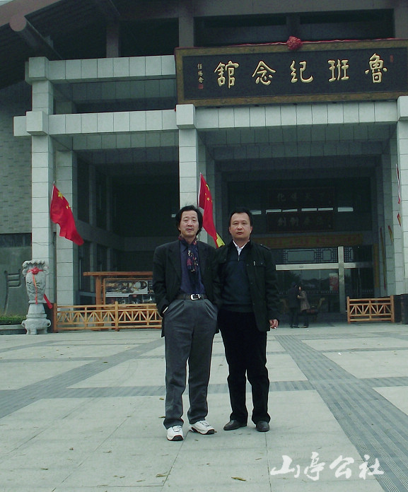 宇太教授和山亭公社站长高贵真在滕州鲁班纪念馆