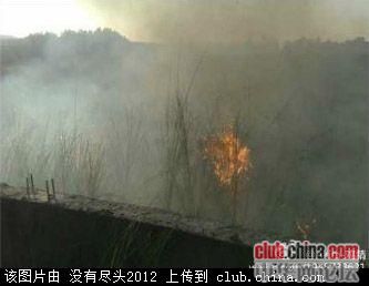 警察向村民发射五十多催泪弹,及不知名的弹药,引燃路边草木。(村民提供)