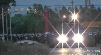广东陆丰乌坎村于今天(12月11日)凌晨四点半左右,一千多名全副武装的警察準备再次进村抓捕。村民闻讯敲响铜锣,五千多村民拿起棍棒、农具把守村口,与警察对峙。期间警察发射五十多枚催泪弹和其它弹药,上午7点左右村民被迫撤离村口,之後警察全部撒离。据说同一时间,其他镇出乱子发生了遊行示威。