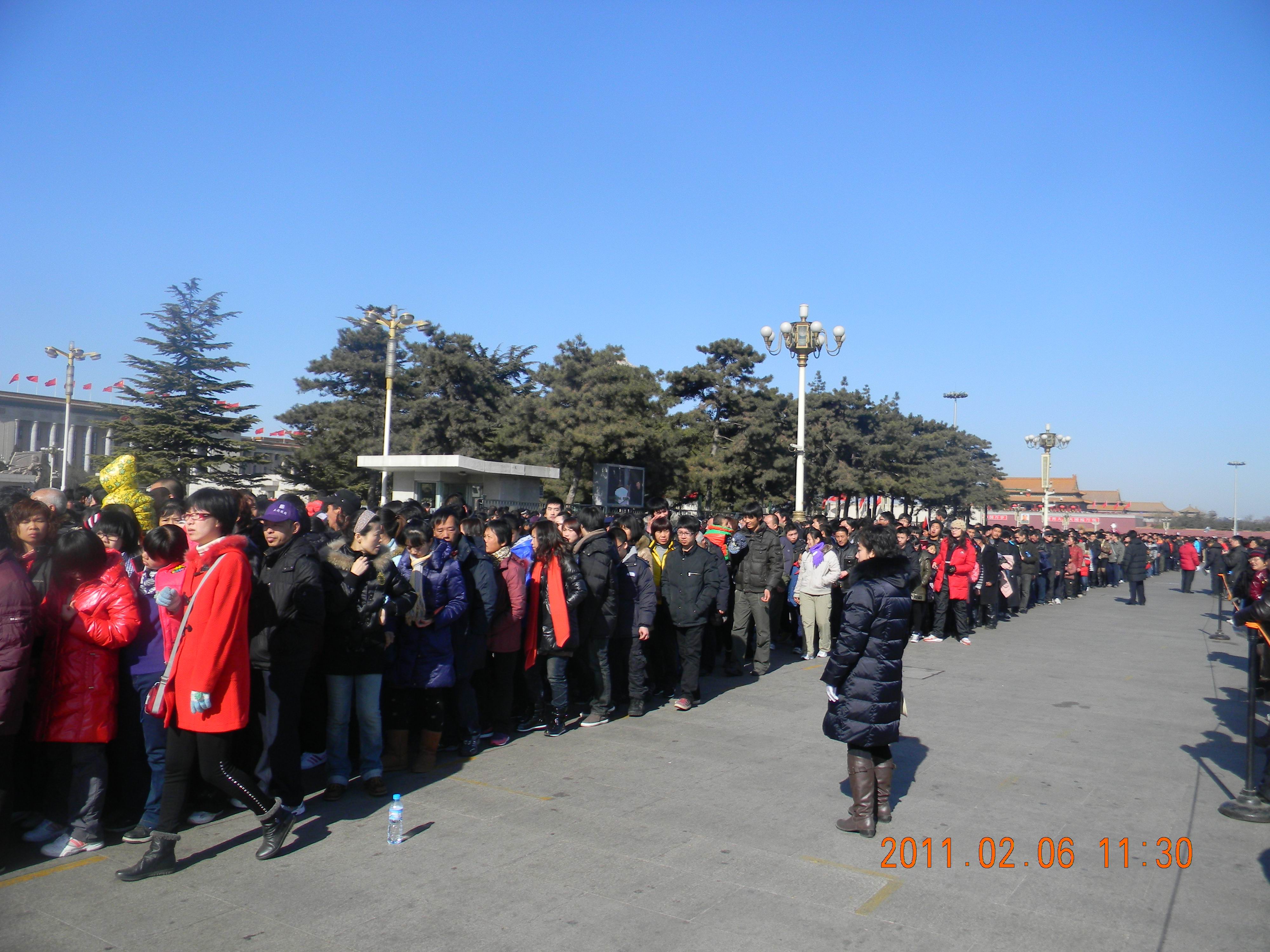 大年初四上午11点,我再次来到天安门广场,随后又往纪念堂方向走去。只见眼前人头攒动,全国各地的人民群众潮水般的涌向毛主席纪念堂,涌向那颗人类最伟大的灵魂······