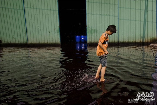 24、孩子从一家染整厂流出的污水中走过,而他丝毫不知,他淌过的污水会对人体健康产生潜在危害。