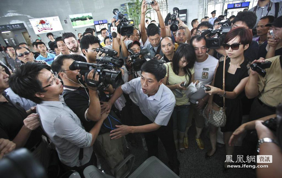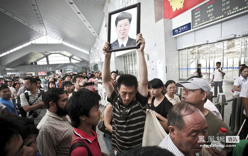 7月27日,7.23温州动车事故遇难者家属聚集温州南站表达诉求。遇难者家属代表提出四个诉求:调查原因说明真相,铁道部大领导与他们见面,解决老人小孩安抚问题,按地方风俗入土归安。图为16时12分,家属拦住进站检票口。