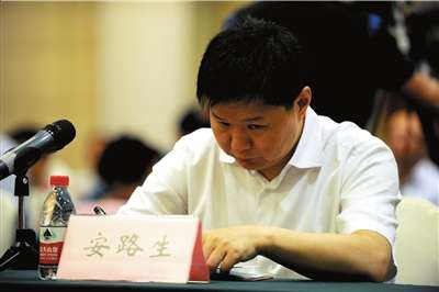 上海铁路局局长安路生在发布会上始终低着头。图/CFP