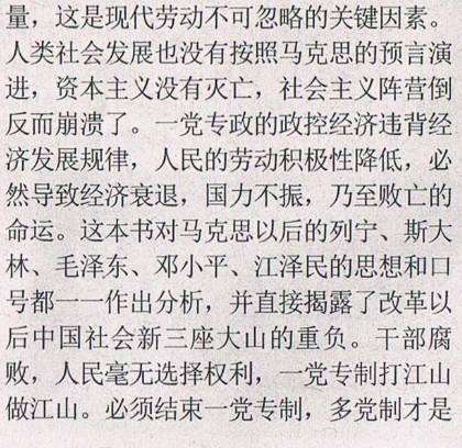 看到一篇文章,一个叫朱振的物理学教授,向网络发表了他的《马克思主义的批判》,他在中国真共产党建党的纪念节日的时候,放出这样的狗屁不通的文字,似乎代表了一些所谓的文化精蝇和资产阶级的头脑,实际上,是一个傻X,是一个有典型性的无知的傻X。