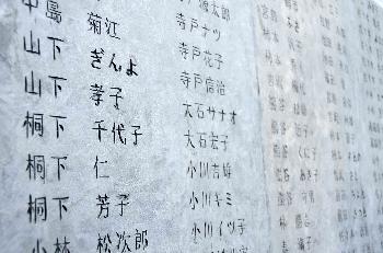 中日友好园林内的日本开拓团民亡者名录上记录的名字新华社记者潘祺摄