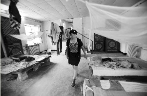 当时这里全是床,住了40多个人,就我一个是女的。”