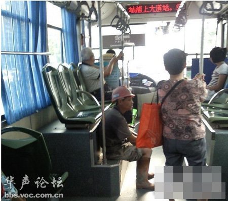 网上看到这张照片,真的让我心酸,更感动得流泪!一位民工坐在公交车座椅下方的台阶上,将空空的座位留给其他乘客。这位兄弟可能是天气太热或者刚完工吧,他满身大汗,后背衣服全部湿掉了,脚上的鞋也带着很多泥,上车后他犹豫了一下就坐在公交车的台阶上。那么我们是否曾想过这件事情的背后真的仅仅是如此吗?也有网友在思考:是什么让这位民工兄弟如此“怕”? 但不管是何原因,不论这位民工兄弟乘公交坐台阶的原因是出于道德自觉怕弄脏座椅,还是缘于自卑心理怕其他乘客指责,这张“民工不想弄脏座椅”的照片都足以让所谓的“城市人”脸红和心酸。