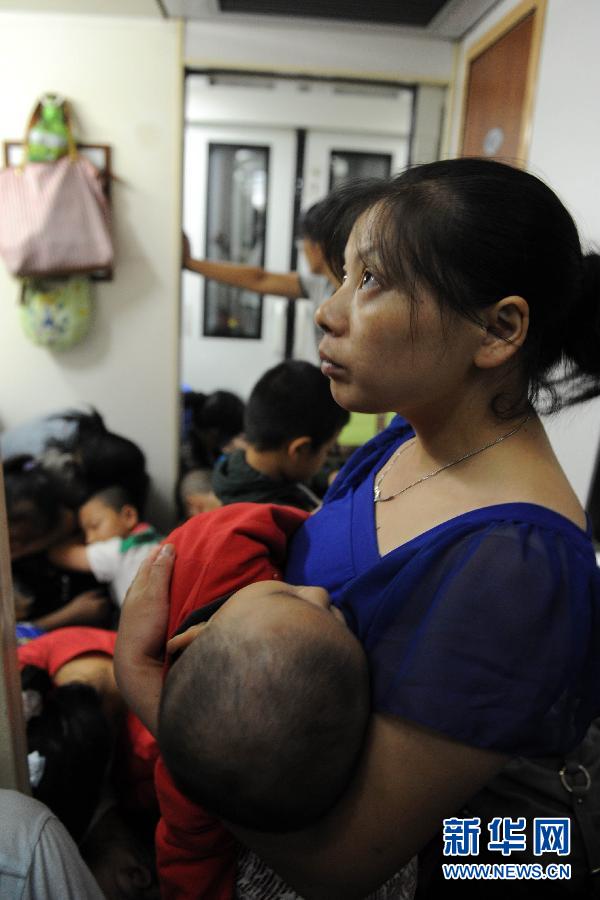 8月22日,列车上一位母亲怀抱孩子踏上漫长的返家路。新华社记者周科摄