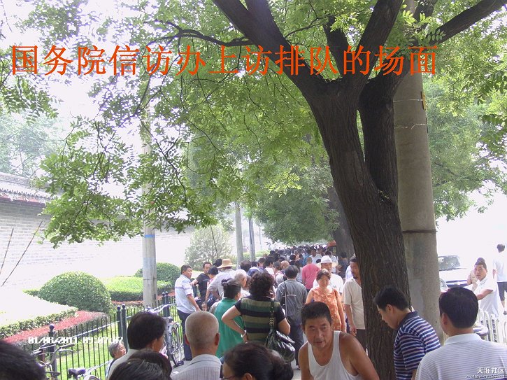 我前面是新疆喀什的一对夫妇领着女儿,为了女儿考学的事情去信访,大概经过是这样,原定招收5人变成了4人,这对夫妇的女儿没有招上,国务院信访的接待人员答复是去人大反映。我们的公务员能不能人性化一点点,在人们排队之前告知应该去哪个部门?或者贴出一些文件、通知能让人们看明白呢?保安做的就是让人们排队,便衣在搜寻着要找的目标,明确了是受害者的人,讲诉着政府不让再上访,上访也不接待。还有上访者打着牌子来回的走动,牌子上证据明确,很奇怪已经明确了的事情政府不积极解决,还在大量的接受信访,这样不知道有什么意义?