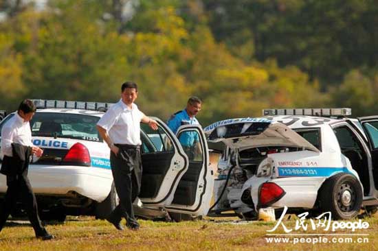 据悉,操作相撞警车的都是休斯顿警官学院的汽车教员。他们奉命驾车载着中国警官在校内训练场上行驶展示警车性能。知情人士称,当一辆警车在完成掉头动作时,与紧随其后的警车发生“追尾事故”。不过,休斯顿警方拒绝透露其他细节。