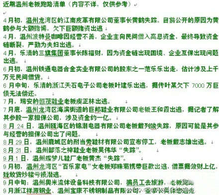 网传温州老板跑路清单:一日曾多达9人失踪(图) [复制链接]